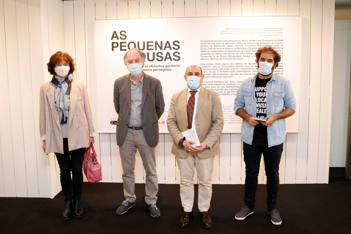 O concelleiro de Memoria Histórica, Jesús Celemín, inaugurou esta mañá no Fórum Metropolitano a mostra "As pequenas cousas", producida polo Museo do Pobo Galego, o proxecto Mapas de memoria e o Centro Internacional de Estudos de Memoria e Dereitos Humanos (CIEMDH) da UNED. Trátase dunha exposición composta de obxectos, documentos, cartas e fotografías de persoas perseguidas e silenciadas polo franquismo, "de como a súa lembranza logrou permanecer nestes obxectos". No acto participaron, ademais, Manuel Vilar, director do Museo do Pobo Galego, e unha representación das asociacións que colaboraron no proxecto que investiga desde hai dez anos os diferentes xeitos de violencia de posguerra, así como o proceso de transmisión dunha memoria traumática.