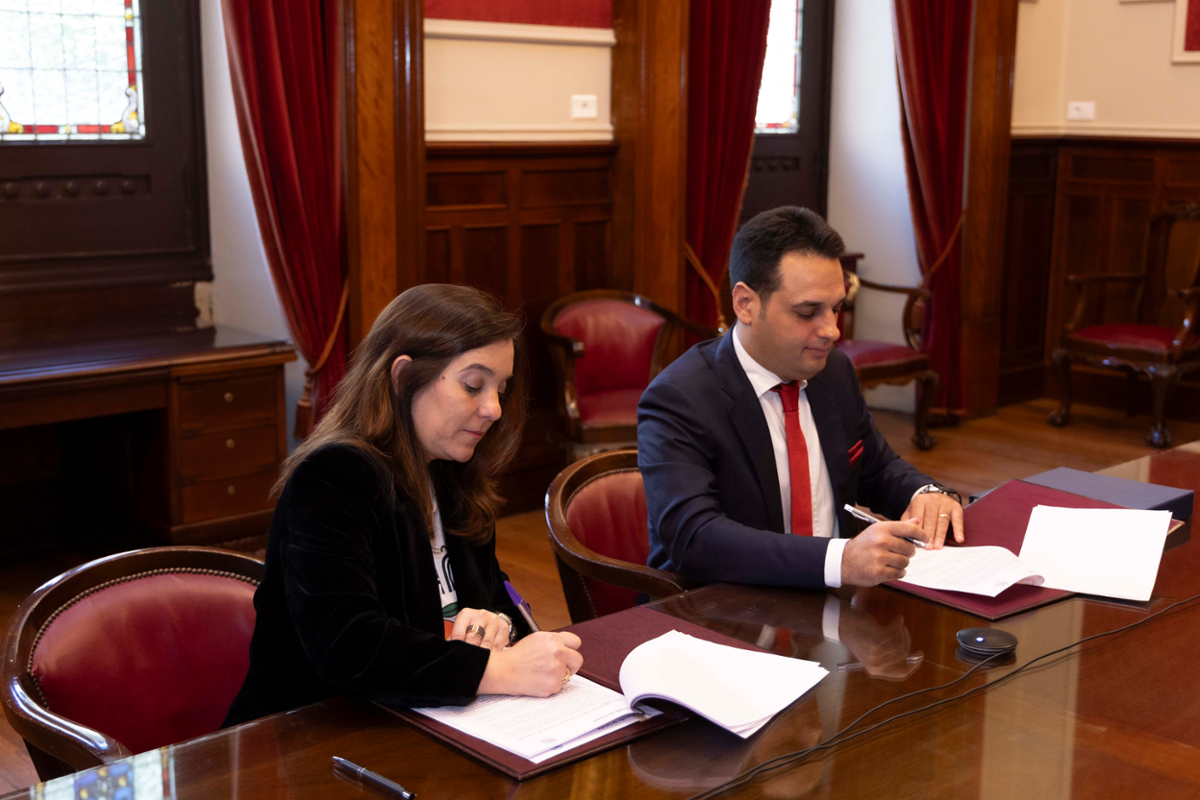 A alcaldesa, Inés Rey, e o tesoureiro da Asociación de Personas con Movilidad Reducida (AsoPMR), Danilo Francesca, asinaron este xoves o convenio de colaboración que permitirá a inclusión da Coruña no proxecto piloto Spot4Dis, unha iniciativa que se desenvolverá en cinco cidades europeas co obxectivo de facilitar a identificación e acceso ás prazas de estacionamento PMR mediante a tecnoloxía satelital, Street View e IA.