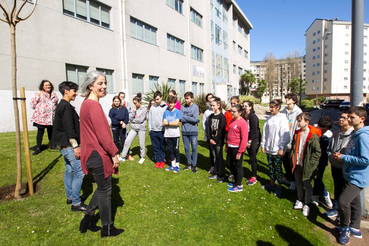 A acción, que se realizou con estudantes do instituto do barrio, forma parte dunha proposta escollida pola veciñanza dentro dos Orzamentos Participativos para incrementar o arborado nesta área