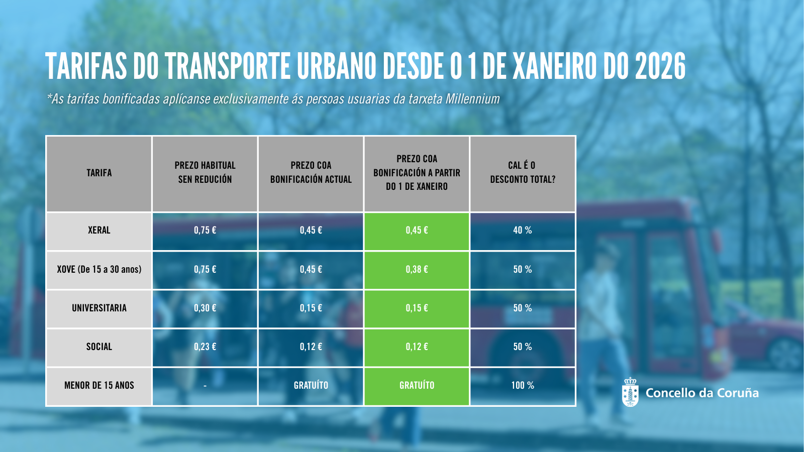 DESCARGA AQUÍ as tarifas do transporte urbano na Coruña desde o 1 de xaneiro de 2026 (1 MB)