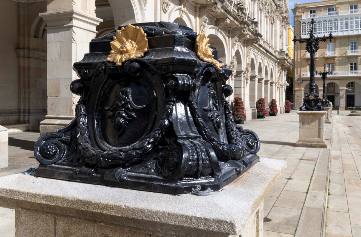 O Concello inicia a reposición dos farois históricos de María Pita, xa restaurados e que nos vindeiros días volverán á súa localización orixinal