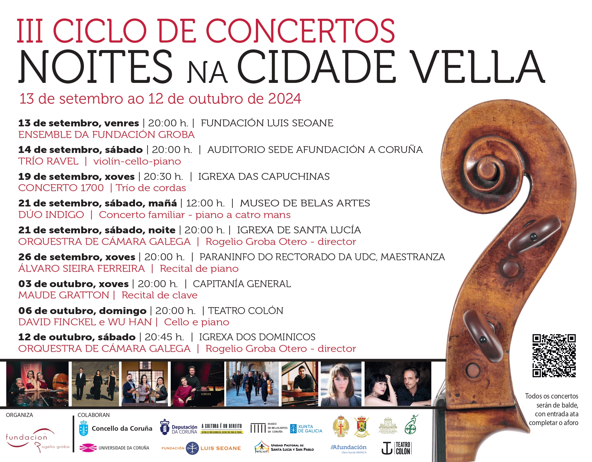 Os concertos terán lugar entre esta fin de semana e o día 12 de outubro. O Ensemble Groba marcará o punto de partida este venres 13 (20.00 horas) e, xa o sábado 14, ás 20.00 horas, actuará o Trío Ravel, no auditorio da sede de Afundación. Dobrochna Banaszkiewicz, ao violín, Suzana Stefanović, ao violoncello, e Héctor Sánchez, ao piano, integran a formación.