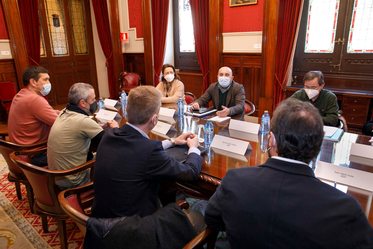 O concelleiro de Economía, Facenda e Réxime Interior, José Manuel Lage Tuñas, reuniuse hoxe con representantes de tres sindicados (CIG, CCOO, UXT) e dúas patronais (AELCO e ASPEL) do sector da limpeza, para escoitar as súas demandas e informalas/os sobre os plans do executivo de regularización e mellora dos servizos que se prestan nas diferentes dependencias municipais.