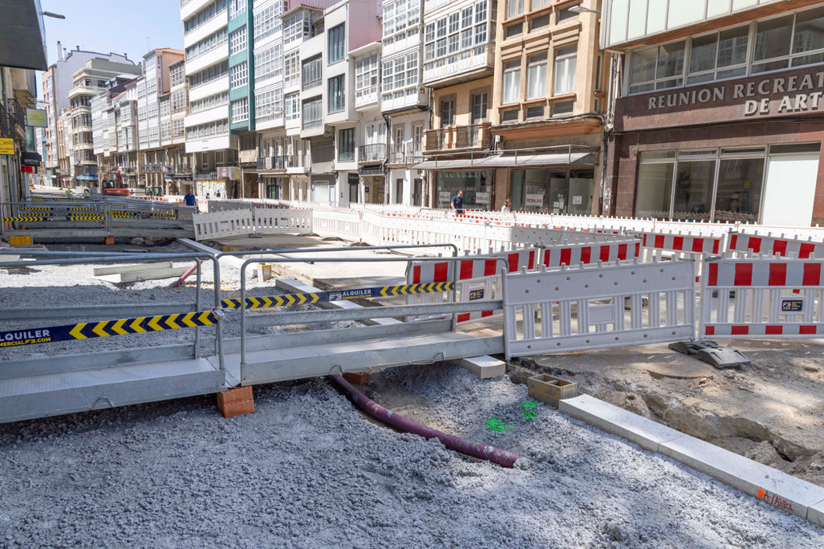 Ademais, tamén se gañarán espazos para as zonas de carga e descarga. A isto sumaranse, ademais, as melloras nos servizos públicos das redes de saneamento e iluminación: no primeiro caso, estanse a substituír os antigos colectores por uns novos, máis modernos e seguros, reforzados fronte a hipotéticas fugas; no caso da iluminación, nos báculos instalaranse novos dispositivos led. En paralelo, tamén se renovará o mobiliario urbano existente na rúa, unha medida que implicará, a maiores, a instalación de novas marquesiñas nas paradas de transporte urbano.