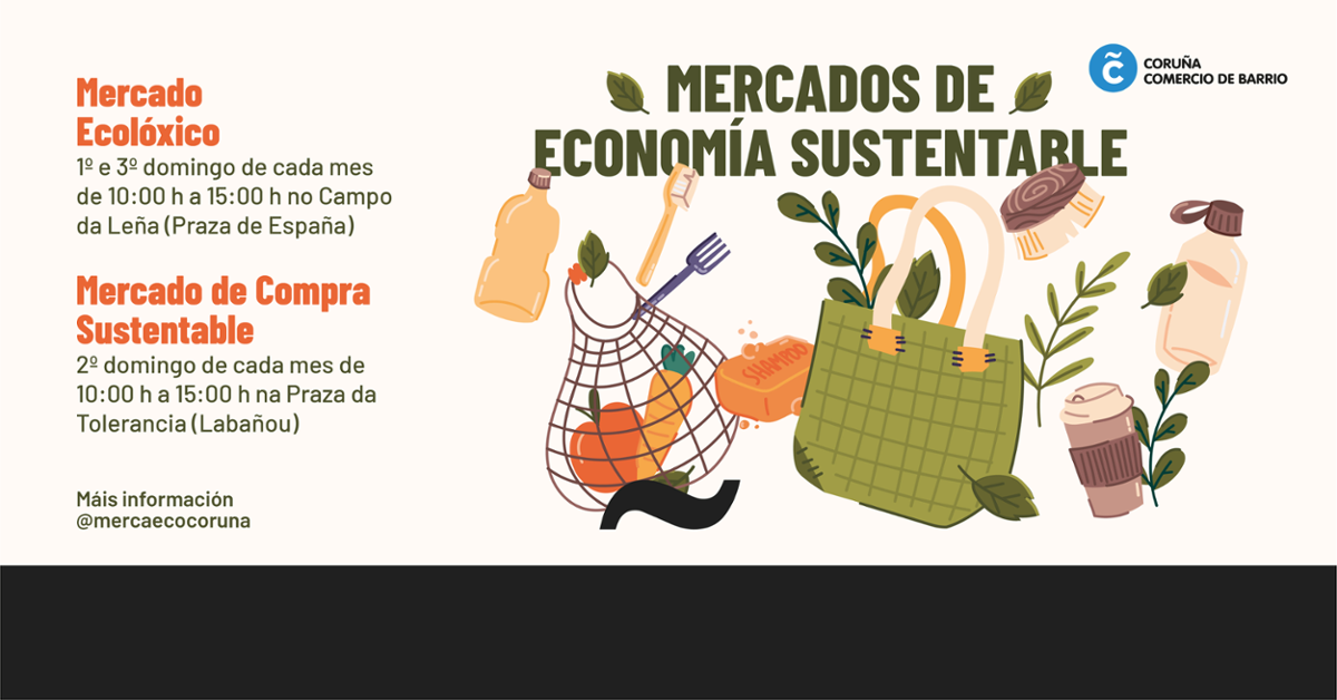 Ademais, haberá dúas modalidade de mercado: o Mercado Ecolóxico, que será o que se celebra no Campo da Leña, e o Mercado de Compra Sustentable, correspondente ao da praza da Tolerancia e ao rotatorio. Os mercados do Campo da Leña estarán especializados en produtos ecolóxicos, que acreditan criterios éticos e/ou sustentables na sua produción, elaboración ou materias primas. Os mercados na Praza da Tolerancia, e outras ubicacións, fomentarán a economía circular e a compra responsable, aplicando a regra das 4R (reducir, reutilizar, reciclar e recuperar). O obxectivo é poder ofrecer o maior número de produtos de economía sostible e actividades paralelas como obradoiros, concertos e actividades para os máis pequenos.