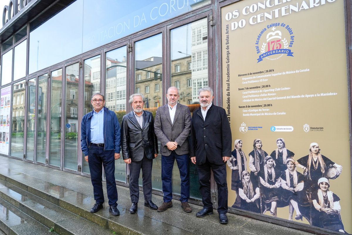 Juan Durán, comisario musical dos actos polo 175º aniversario da Real Academia, explicou que, a través destes concertos, o obxectivo é lembrar o que se levou a cabo fai xustamente 75 anos, en 1949, no Teatro Rosalía de Castro, cando se conmemorou o centenario da fundación da Real Academia Galega de Belas Artes. Tamén entón participaron as agrupacións instrumentais e vocais de máis relevo da cidade, incluíndo música de compositores membros da Academia.