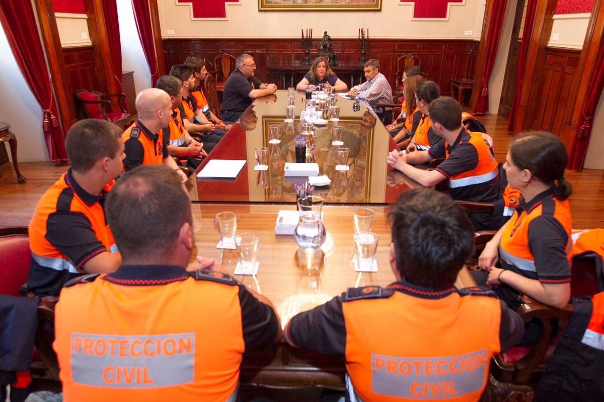 A responsable da Concellería de Igualdade e Diversidade e da Área municipal de Seguridade Cidadá, Rocío Fraga, reuniuse esta mañá no Palacio de María Pita con membros da agrupación de persoal voluntario do servizo de Protección Civil.