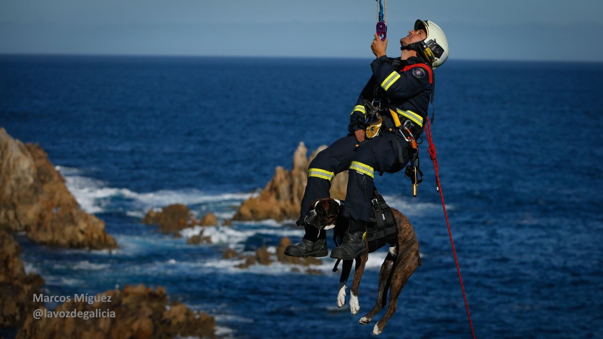 Á nosa chegada, non vemos á cadela por ningún lado, pero a súa dona dinos por onde se caeu. Tras valorar a accesibilidade (por terra ou por mar), accédese por terra ao ser máis seguro para os rescatadores. Pertrechados co material de escalada, descéndese polas paredes do cantil ata ver e rescatar a unha cadela de raza pastor alemán. Finalmente enviouse para o lugar unha autoescala para facilitar o ascenso e rescate da cadela e as súas rescatadores.