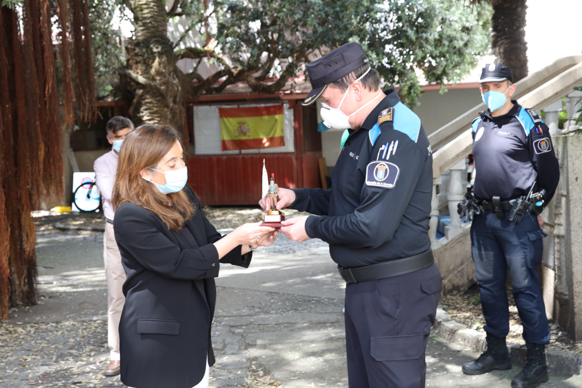 A alcaldesa lembrou que houbo semanas en que lles deron os parabéns a máis de 60 cativas/os, "mais non deixaron por iso de lado as súas obrigas". Rey gabou a súa profesionalidade nestes dous meses e outorgoulle a cada axente unha reprodución da Persoa Abandeirada da Milicia Honrada, en que se supón que están as orixes da Policía Local, en sinal de agradecemento.