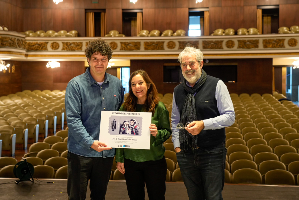 O espectáculo humorístico de Carlos Blanco e Xosé A. Touriñán 'Somos criminais e punto final' establece estes días o récord de persoas asistentes do Teatro Colón con 25.600 espectadores en total, repartidos nas súas diferentes xiras que pasaron pola cidade desde o 2018. Con motivo deste fito histórico para a comedia e cultura na cidade, a alcaldesa, Inés Rey, acompañada polo concelleiro de Cultura e Turismo, Gonzalo Castro, fixo entrega esta mañá a Touriñán e Blanco dun distintivo conmemorativo do récord. A alcaldesa subliñou que é a primeira vez que un espectáculo de humor no Colón presenta cheo en todas as funcións durante 8 pases consecutivos