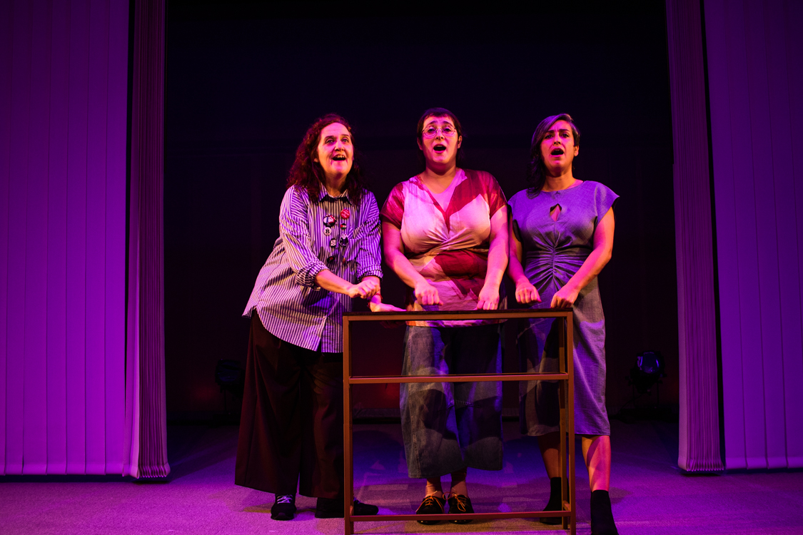 Paula Carballeira, María da Pontragha e Vero Rilo interpretan a tres bruxas que dende a comedia amosan as historias das mulleres do rural