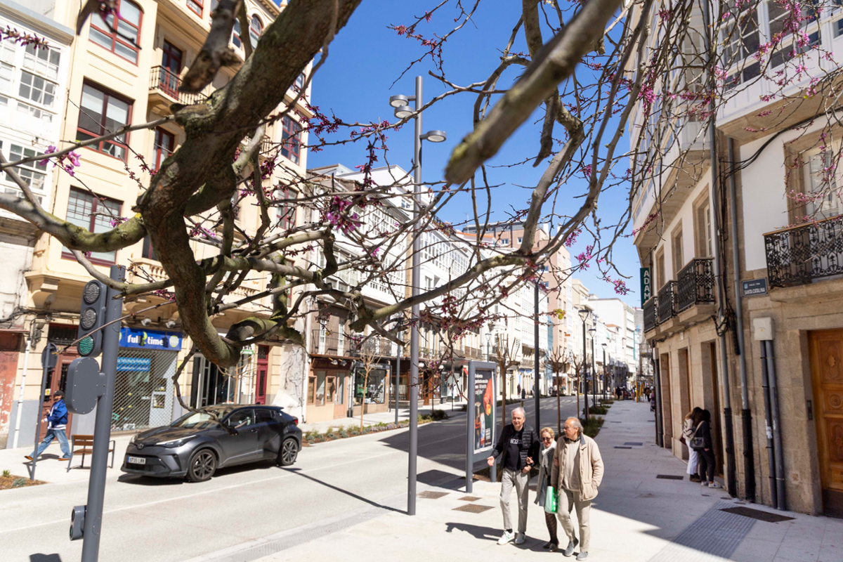 Rosa Otero, nomeada en outubro Filla Adoptiva da cidade, foi a gran protagonista do acto, no que participaron a alcaldesa, Inés Rey, e o presidente da asociación de comerciantes, Leonardo Tomé