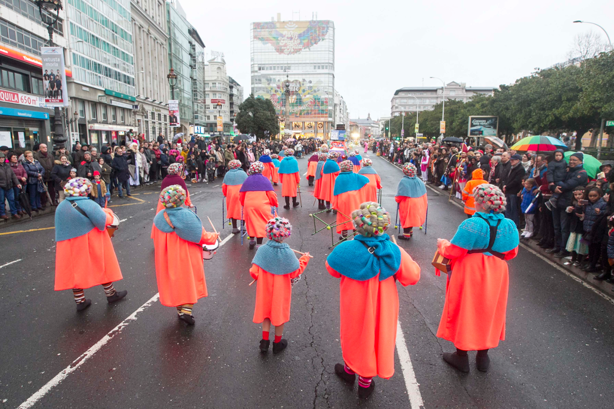 • Corte total da praza de Santa Catalina - Cantóns - Avenida da Marina - Porta Real para a celebración do desfile de carrozas que entrarán na praza de María Pita. Mantense a parada interurbana de Entrexardíns e desviarase o transporte público da avenida da Marina pola avenida do Porto.